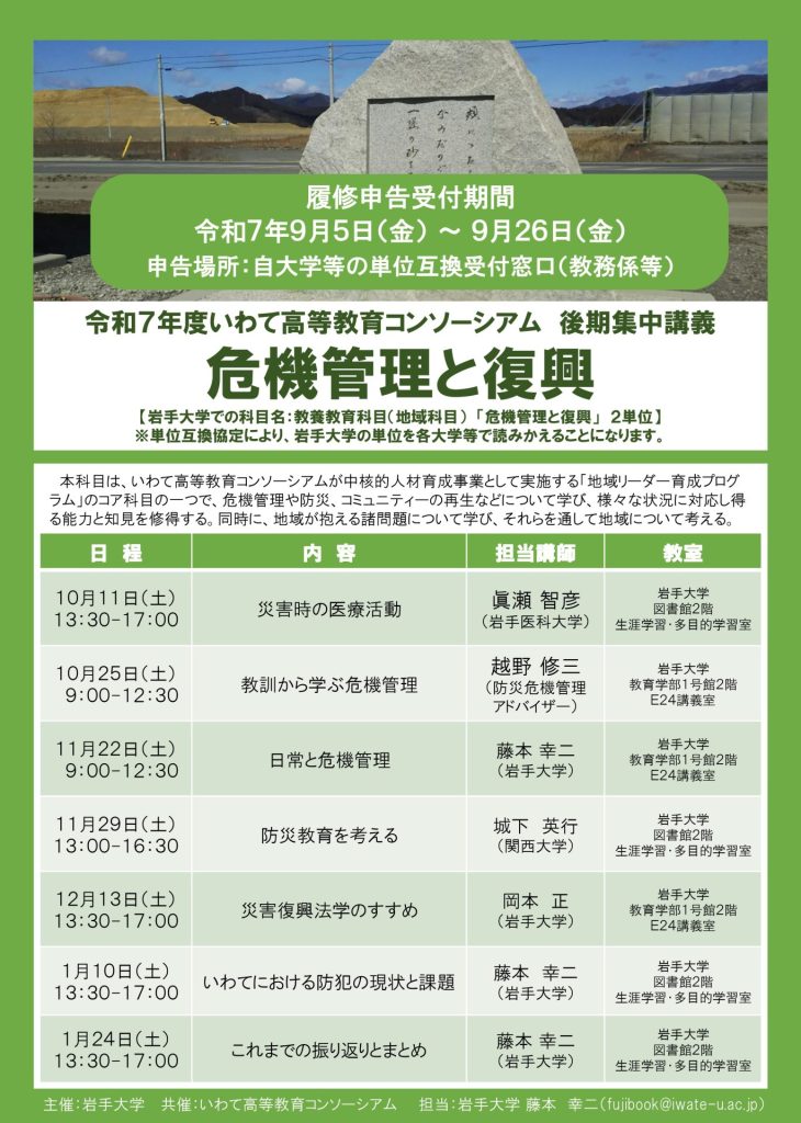 令和7年度 いわて高等教育コンソーシアム 後期集中講義 「危機管理と復興」