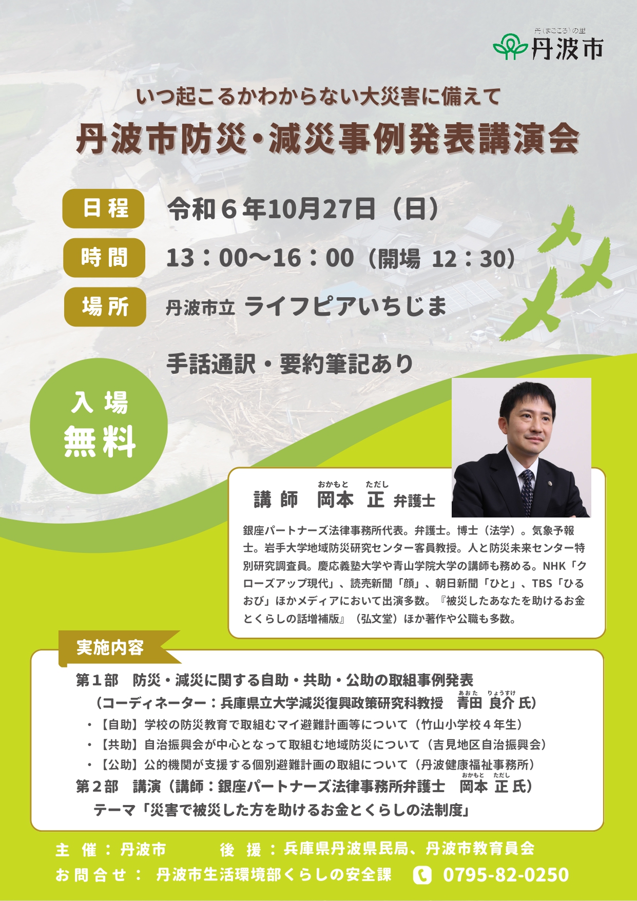 【講演】(丹波市)「災害で被災した方を助けるお金とくらしの法制度」