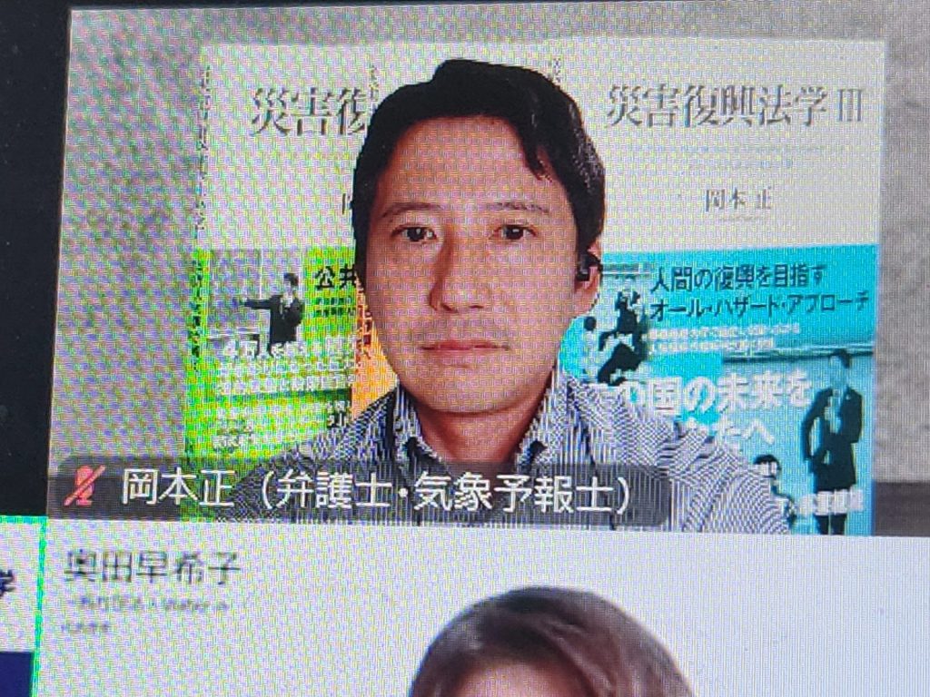 パネリスト 岡本正  弁護士・博士(法学)・気象予報士 災害復興法学 >講演資料はこちらです