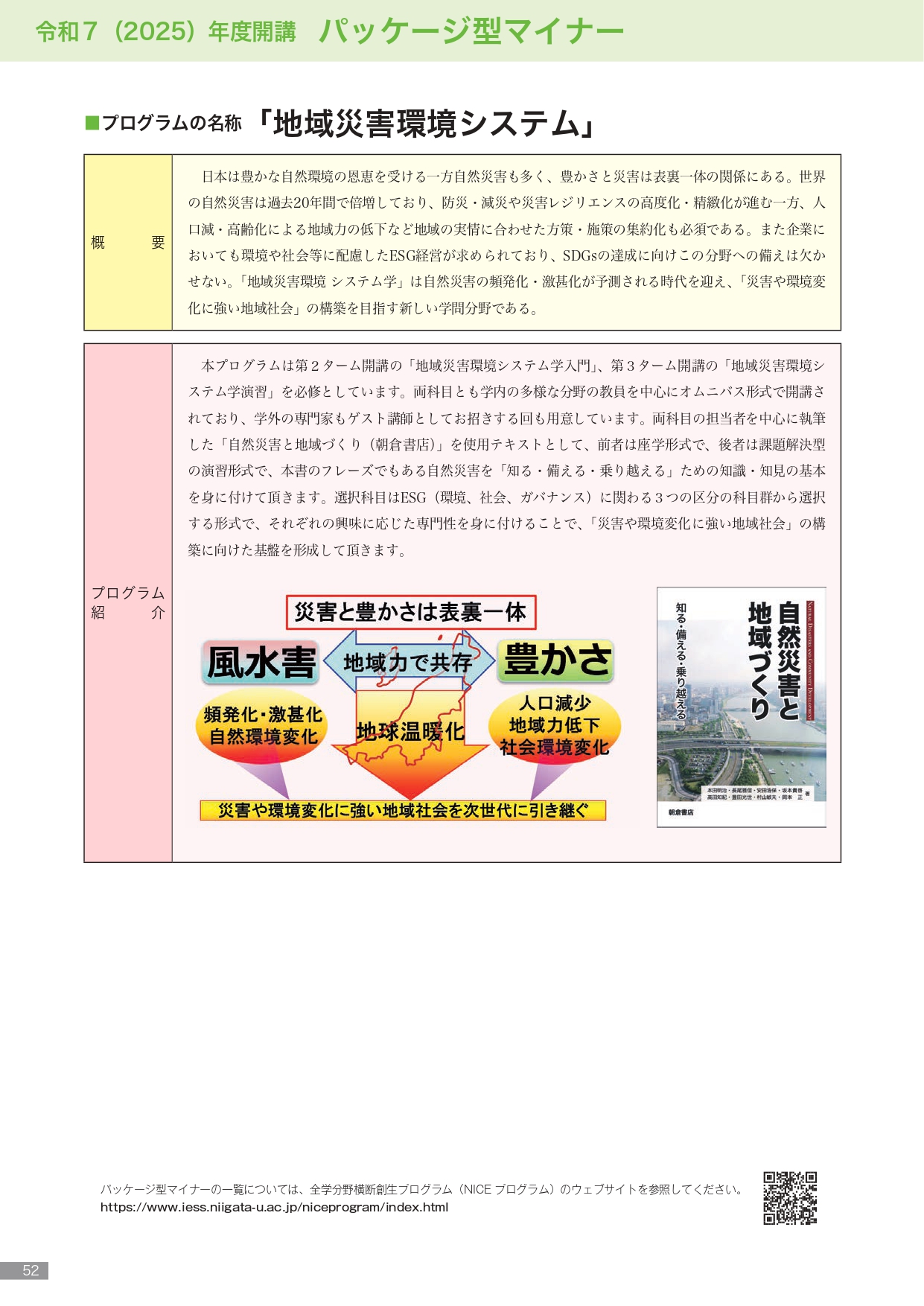 2025年11月5日 地域災害環境システム学(演習)2025年度開講 新潟大学パッケージ型マイナー履修