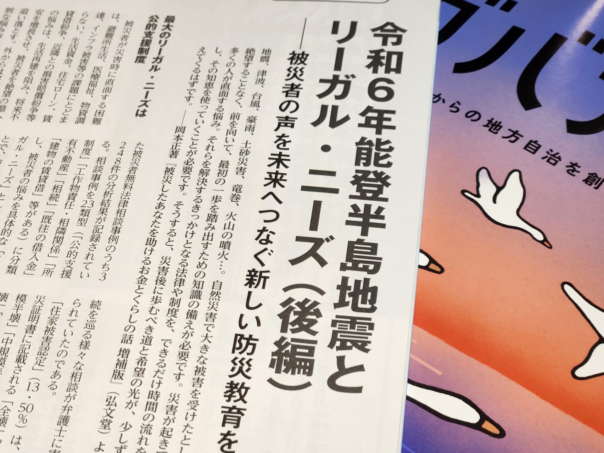 【寄稿】(月刊ガバナンス)「令和6年能登半島地震とリーガル・ニーズ(後編)-被災者の声を未来へつなぐ新しい防災教育を」