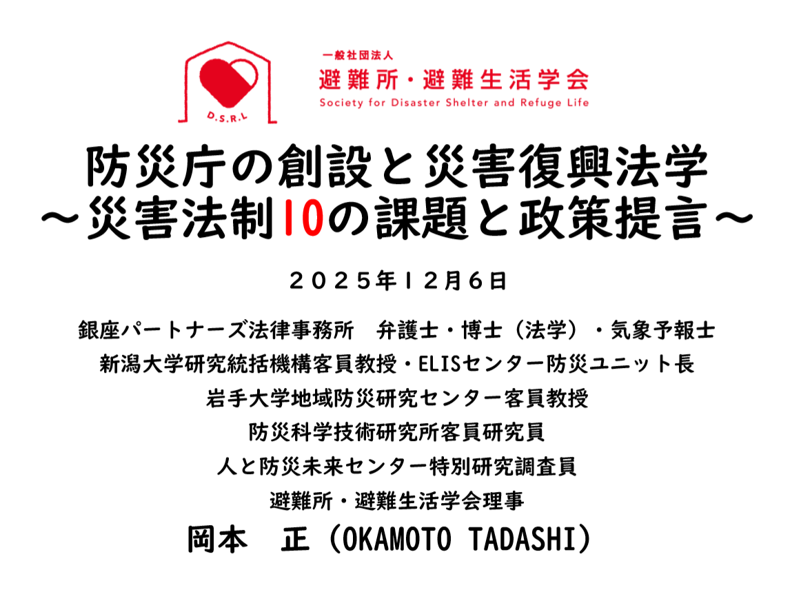 【報告】(避難所・避難生活学会)「防災庁の創設と災害復興法学~災害法制10の課題と政策提言~」