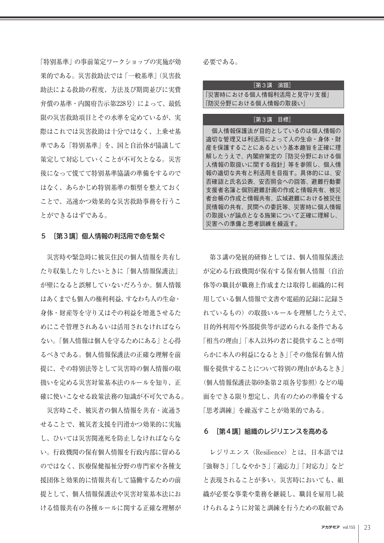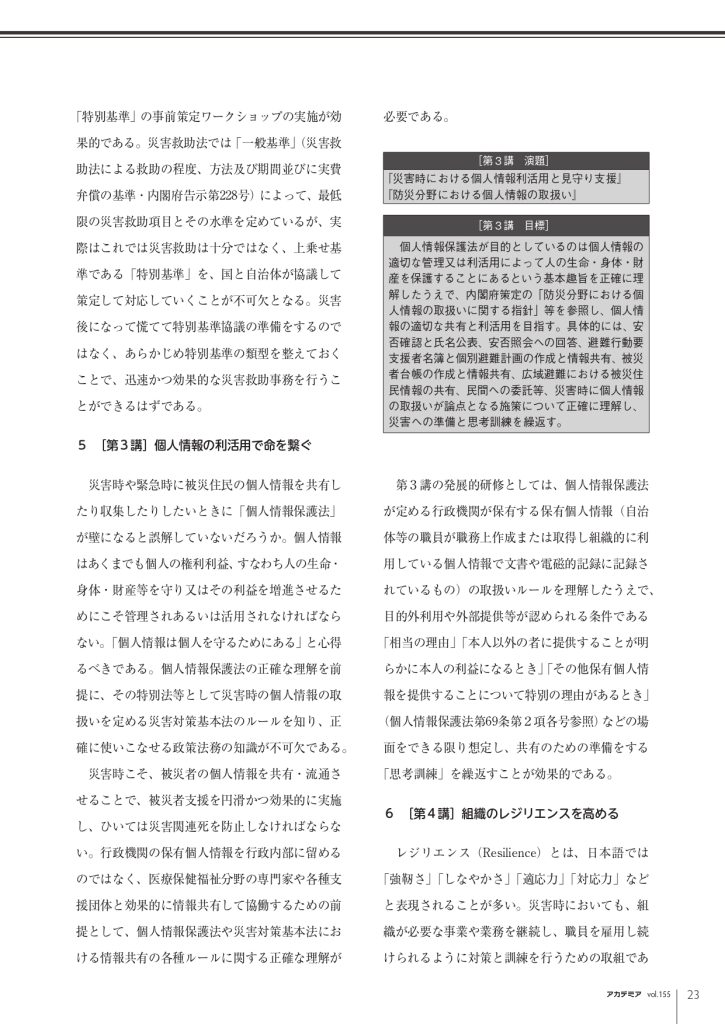 全文はこちら>災害復興法学特別講義─必修・命を守り生活再建を支える講座─