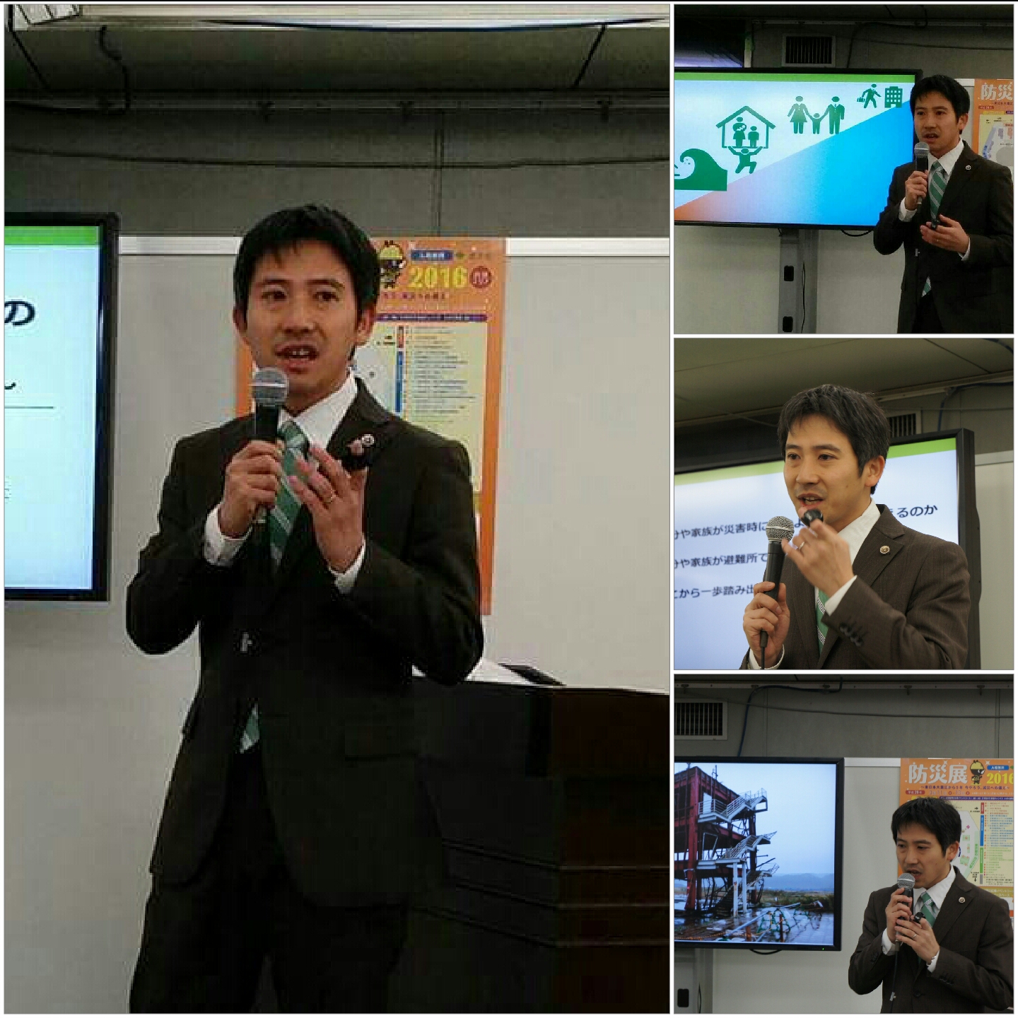 2016年3月11日 平成27年度東京都防災展 防災ミニセミナー(新宿駅西口広場特設ブース)/岡本正「災害後を生き抜く 住まい・お金・生活防災の知識の備え」。新宿駅の屋内展示広場で防災ライブセミナーを実施しました。東京都と災害協定を結んでいる専門士業団体で構成する「災害復興まちづくり支援機構」のメンバーとして参加しました。