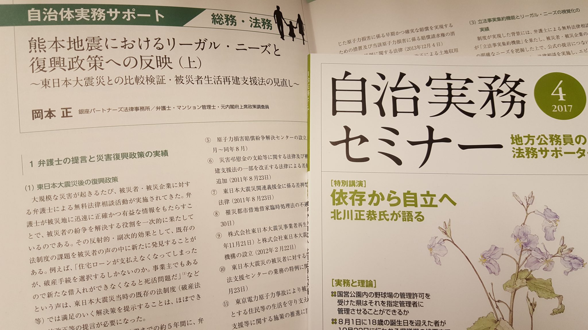 ホーム > 活動実績 > 【寄稿】(自治実務セミナー)「熊本地震におけるリーガル・ニーズと復興政策への反映(上)~東日本大震災との比較検証・被災者生活再建支援法の見直し~」
