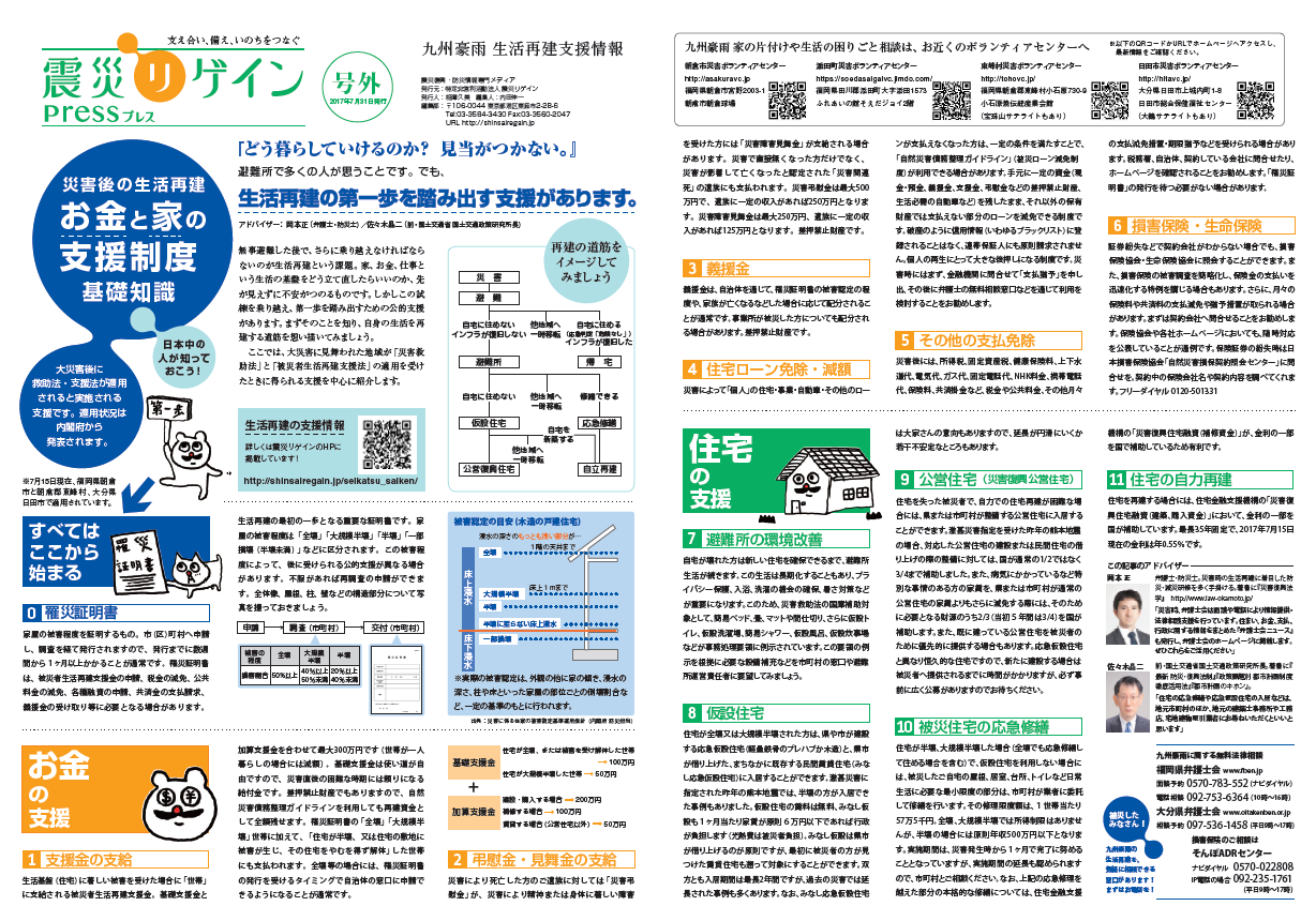 岡本正が監修した「震災リゲイン号外 九州豪雨生活再建情報」が読売新聞の記事で取り上げられました。