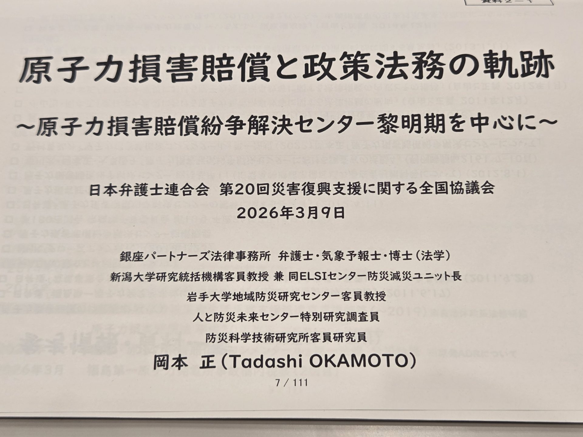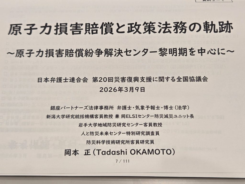 ホーム > 活動実績 > 災害復興法学 > 【講演】(日本弁護士連合)「原子力損害賠償と政策法務の軌跡 ~原子力損害賠償紛争解決センター黎明期を中心に~」