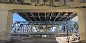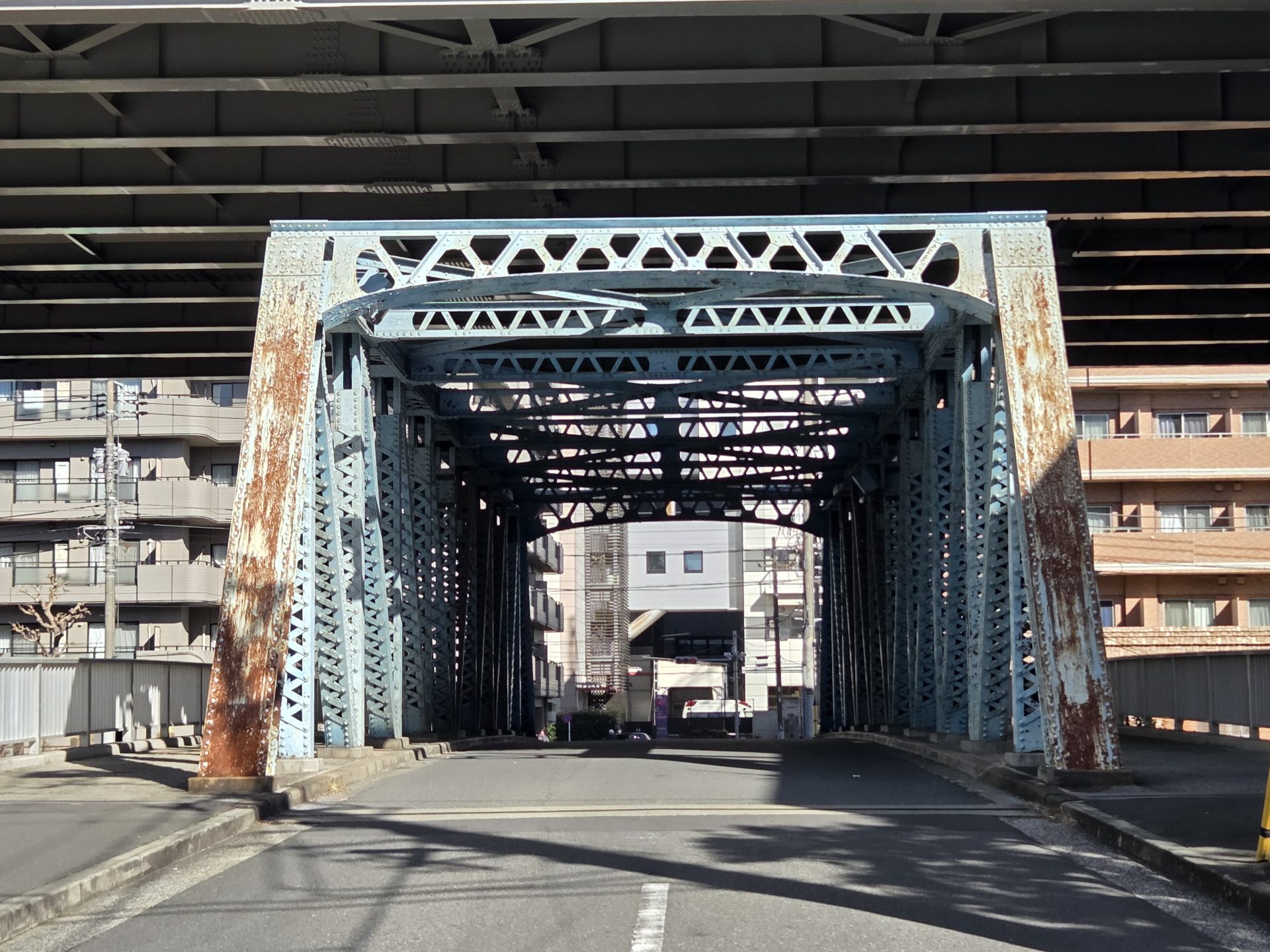 橋長35.9m、有効幅員11mという小さい橋だが、無骨で力強い鉄骨のトラス橋は存在感抜群。橋梁ファンでなくとも美しい、これが撤去されていまうのは惜しい、という印象を抱かせる。