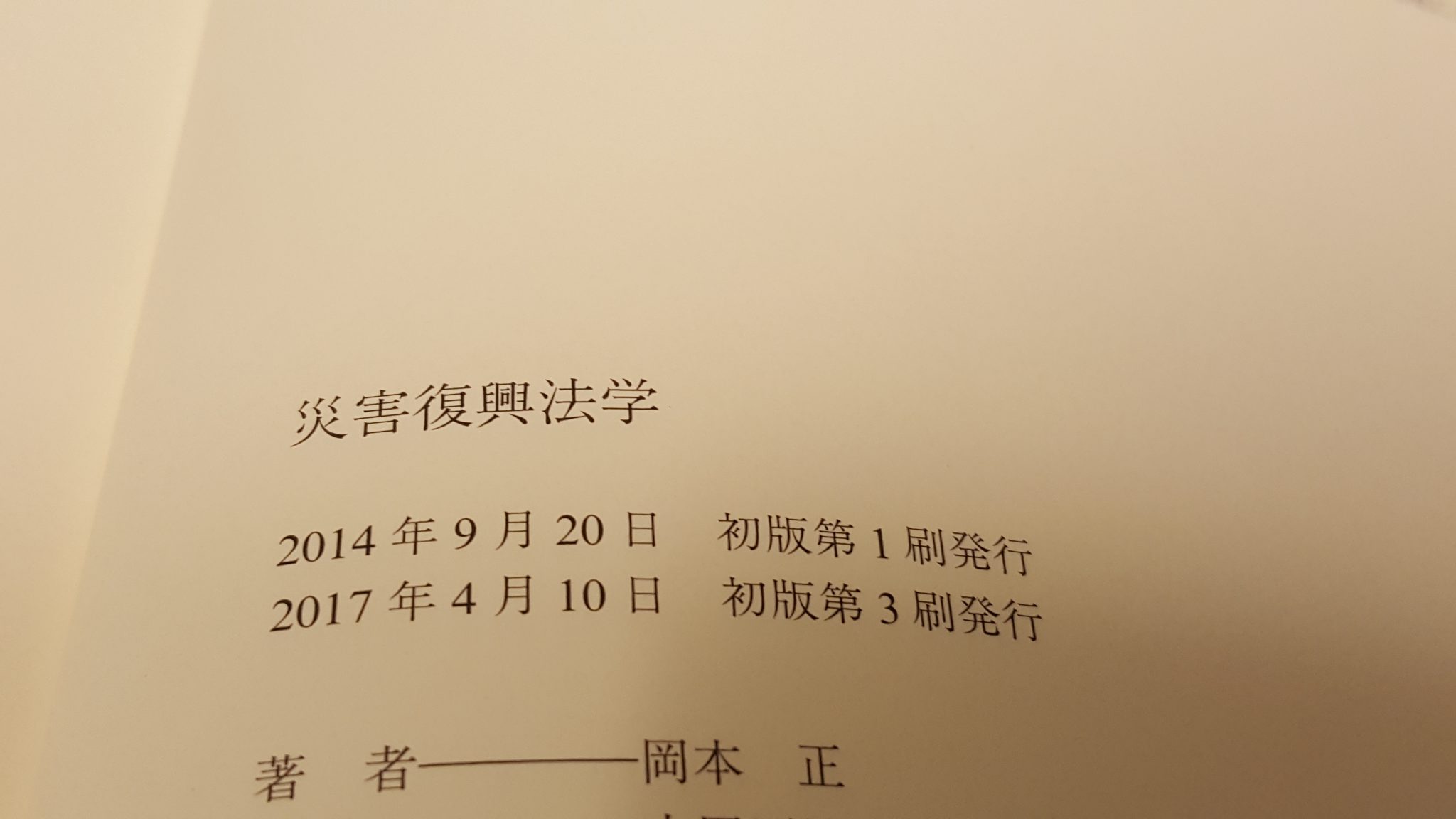 【御礼】「災害復興法学」慶應義塾大学出版会・増刷(3刷)となりました