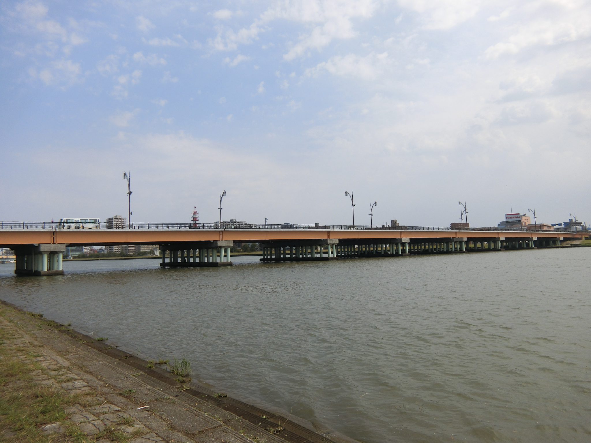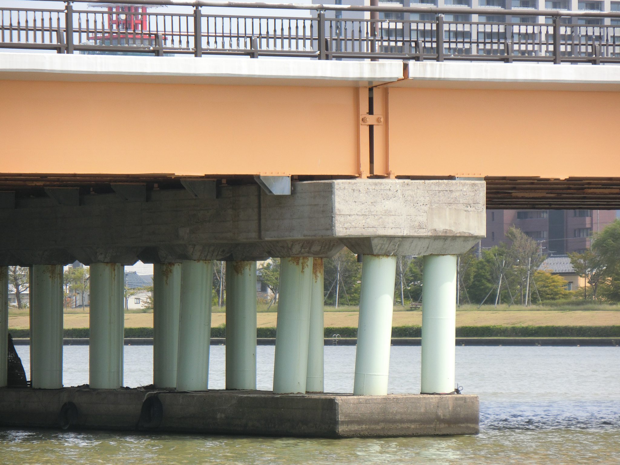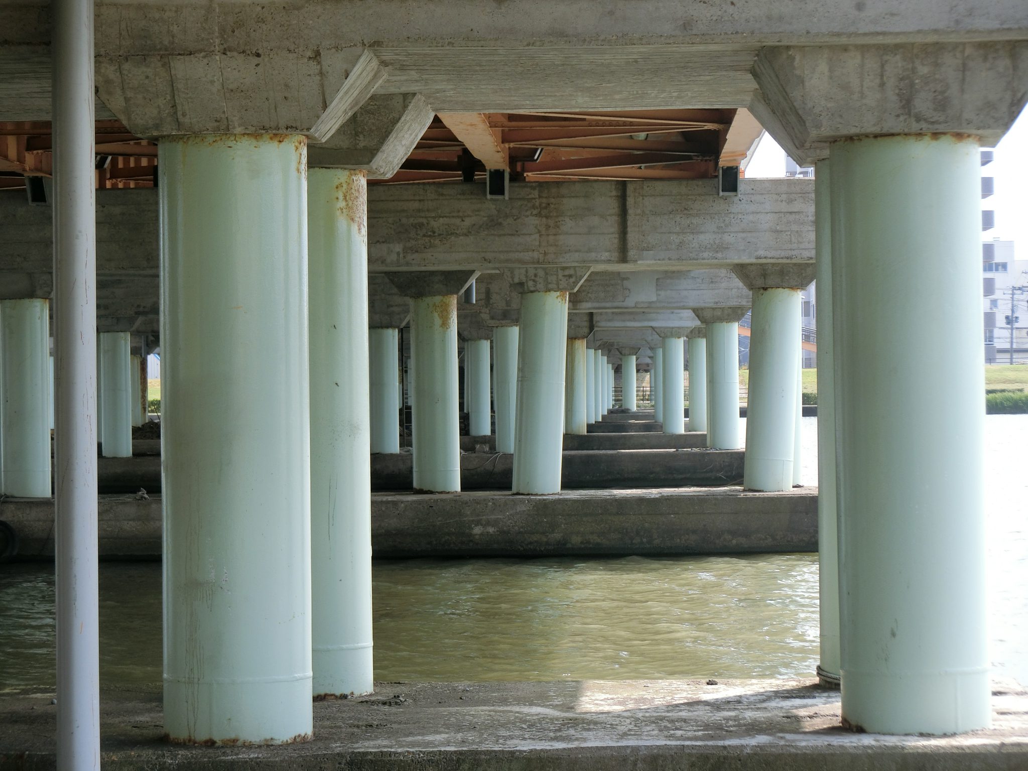 昭和大橋の曲がった橋脚